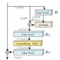 -Global Context block, 본 논문에서 dataset을 분석한 결과 strong self-similarity 즉 데이터셋 이미지에 유사한 texture structure가 있는 것을 관찰했다. 따라서 Global Context block을 Network 전단부에 배치한다. Global Context block(Figure 2)은 global context framework, non-local module SE(Squeeze and Excitation) block 이 3가지의 characteristics을 결합으로 구성된다.